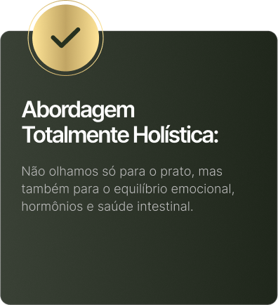 Ao tratar o corpo como um todo, a Dra. Joana vai muito além de um plano alimentar tradicional. Sua abordagem holística identifica as causas emocionais, hormonais e metabólicas que impactam o seu peso e o seu bem-estar. Assim, você constrói uma vida saudável e equilibrada, de dentro para fora.